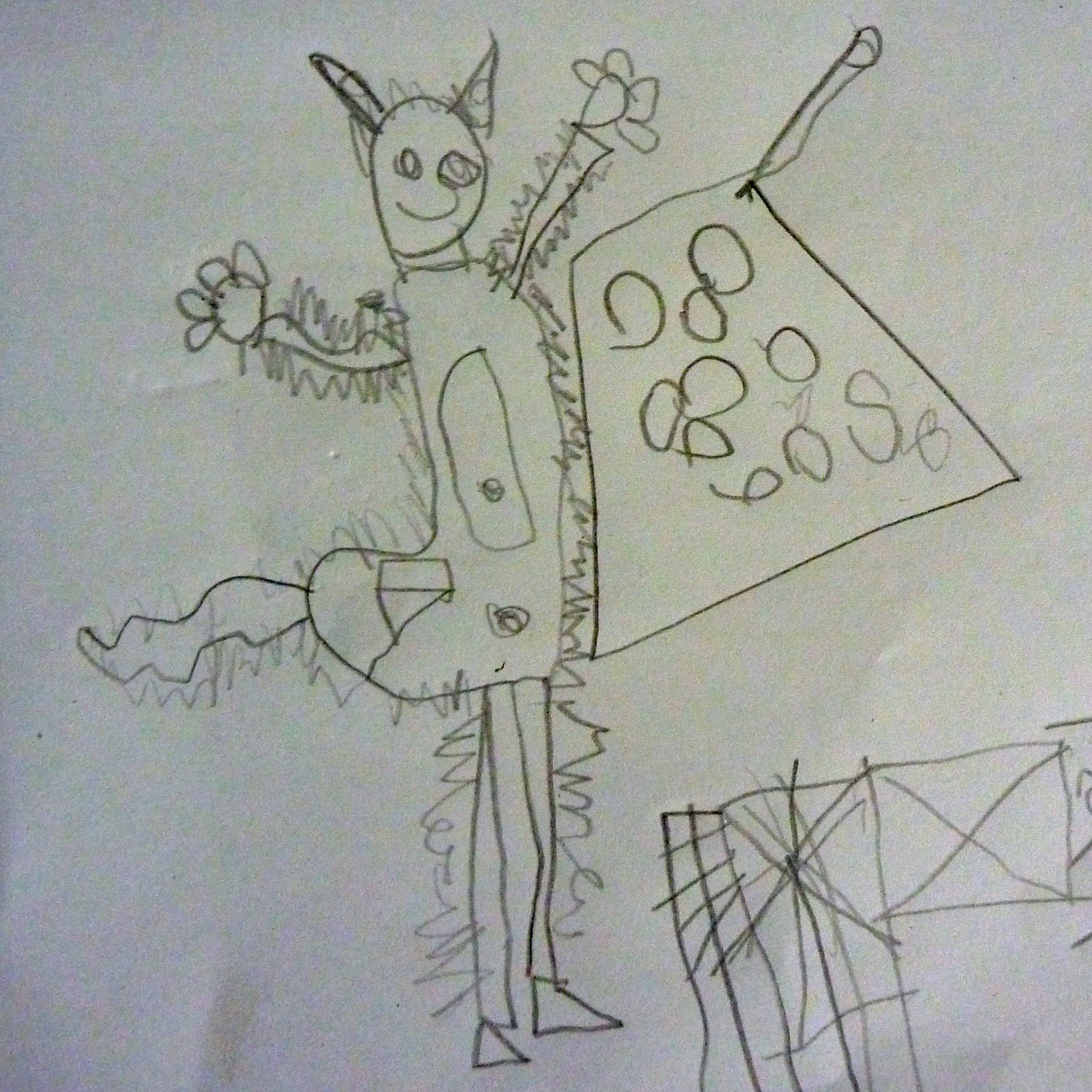 I’ve saved the best for last. My son’s drawing of a cat that’s happy because it has a saucepan full of food, and very happy he looks too.