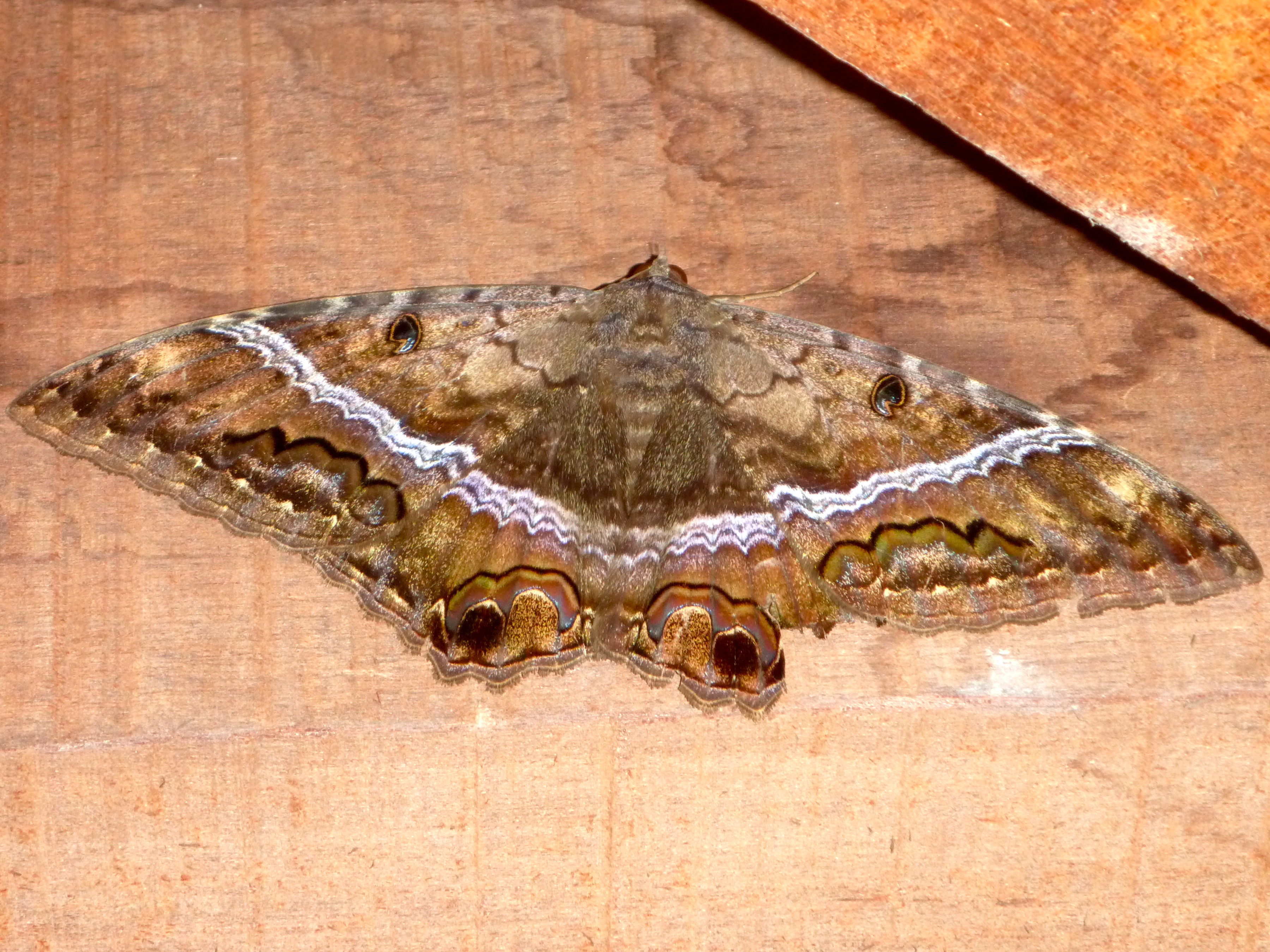 This moth (well I assume its a moth as they fly about at night) has a wing span as wide as my hand span, 22cm.