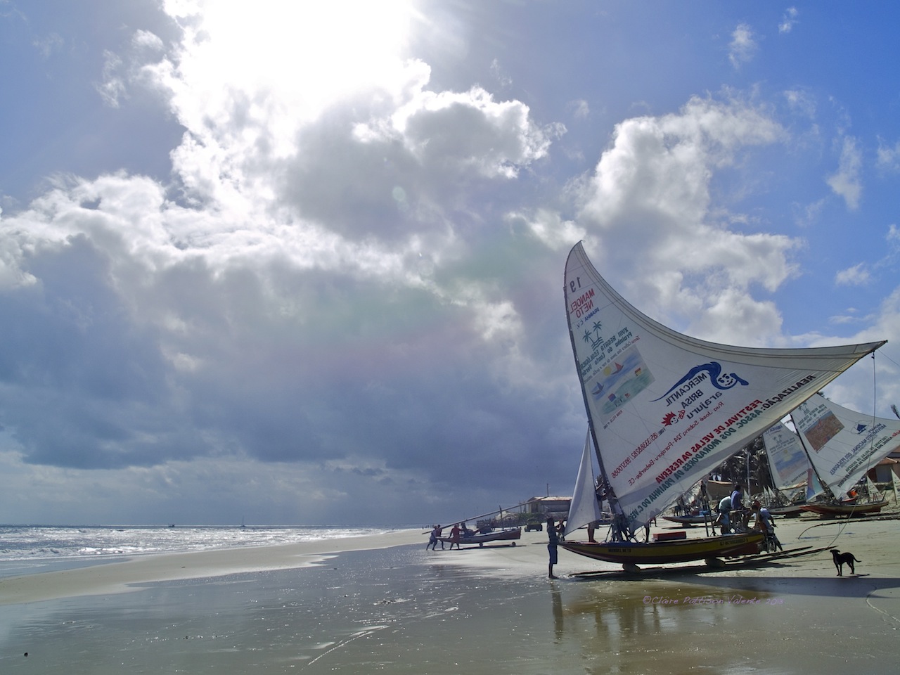 On their return, as they headed into the surf leading up to the beach, the captain of the jangada realised they were about to be hit by a huge wave and ordered Jaila to jump off, to avoid being trapped under the boat as it went over. Thankfully she was fine, her life jacket held her up, she managed to hold the film camera out of the water while another crew member helped her to shore, well done that girl. I have given them my footage of the race to add to their own and they are working on a film which hopefully will be ready soon.