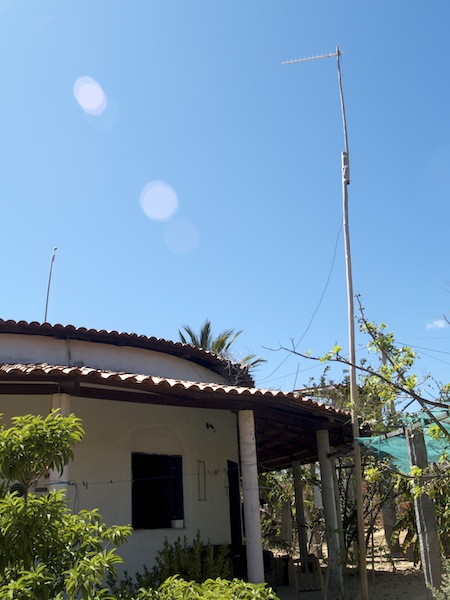On a trip to Fortaleza we bought one, first trying with just the phone, it did work but the signal came and went and so, on another trip to Fortaleza, we bought the external antenna. We also bought an adaptor so that we could plug the mobile modem for the internet into the antenna and get a signal for it that way, no more hoisting it up the pole.