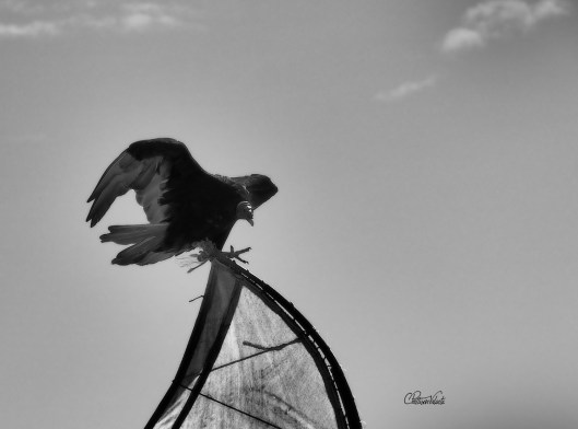 After a little while of being out in the sun, Neu begins to suffer pin pricks all over his torso, we are told it is a symptom of his anaemia. It is unpleasant for him and even though we’d found some shade, after having watched a couple of boats go out, we decided to head for home. At that moment a vulture chose to land on the top of Neu’s boat mast. It’s not common to see them do this and I was frantic to get my camera out before it flew away. I was pleased to get the following shots.