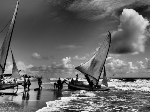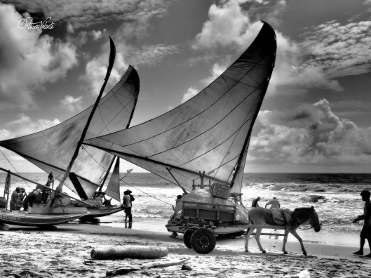 Everyone breathed with relief as Jola’s boat struck the beach safely, though all were reluctant to brave the rain and aid him move it higher up the sand. Jola is known as a good fisherman and was likely to have a good catch, anyone helping him up the beach would be rewarded with a free fish. Eventually a few went to help and we all laughed as they ran out shrieking, hopelessly trying to dodge the pelting rain.