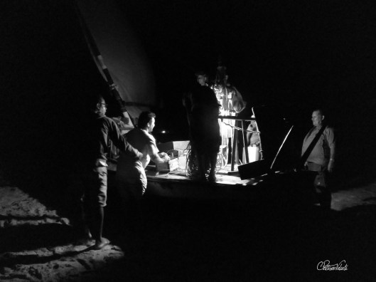 Through the rain and darkness, we could just make out Neu’s brother Jola bringing his boat to the beach. The point of leaving and arriving on the beach is always the most dangerous and some of the men expressed concern he might capsize but Jola is a very experienced sailor and if anyone could land in those conditions, he could.