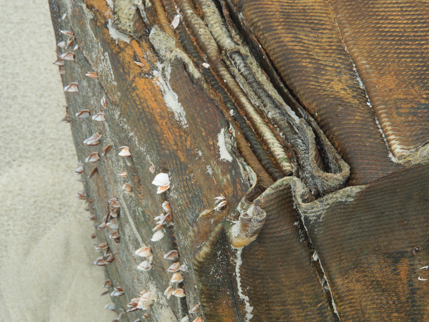 I knew that before washing up on the beach here, the bales had been floating in the sea for some time because many were covered in goose barnacles, a surface living crustacean. Putting all this together, I concluded that the bales were probably latex rubber and probably from a 1st or 2nd World War shipwreck but that was as far as I could go.