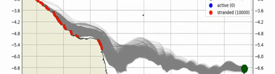 Mathmatical model of direction of flow for material leaving the wreck of the Rio Grande. ©Labomar